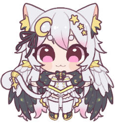 A celestial Tressym that was once a star, moving across 30 Doradus (also known as the Tarantula Nebula). She goes by many names, but was documented to be named Hodge 301 by earth. After the battle to close a black hole that threatened to suck up the stars within the Nebula, Seiros exploded in supernovae, her core shooting through space. After eons of years, she eventually crashed into earth. Blessed by Asteria, she was transformed from her broken star form into the form of a winged-cat/human where she would live a peaceful life amongst the earthlings.Adventuring the world with her.. interesting companion Steven, they set off to see what the human world is all about!She wears a special star amulet on her tail which allows her to transform between her Tressym form and human form, Seiros is also able to hide her wings whenever she pleases.